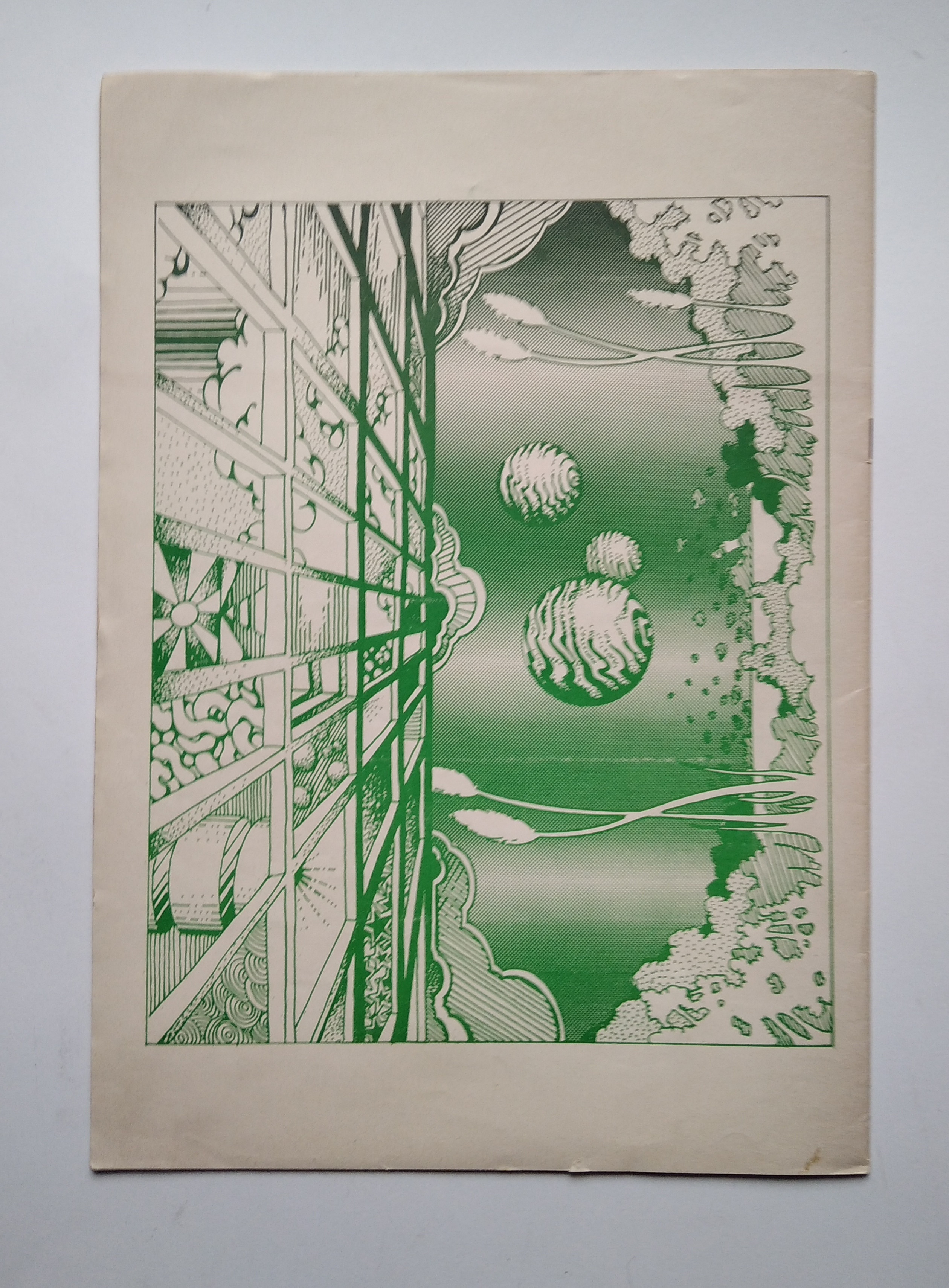 Brossura (cm 29 x21) pag 12+4 (copertina). Collaboratori: Caza, Giulio Tedeschi, Franco Beltramelli, Piero Naselli e altri Freak ticinesi. Rivista underground del Canton Ticino fondata da Antonio Rodriguez nel 1969 e pubblicata fino al 1975 in due serie distinte. La seconda serie fu distribuita in Svizzera, Italia, USA, nel circuito IAP. -- Ogni numero è un'esplosione d'illustrazioni a colori con testi scritti a mano in un intarsio di disegni allucinati e simbolismi psichedelici (Matteo Guarnaccia)
